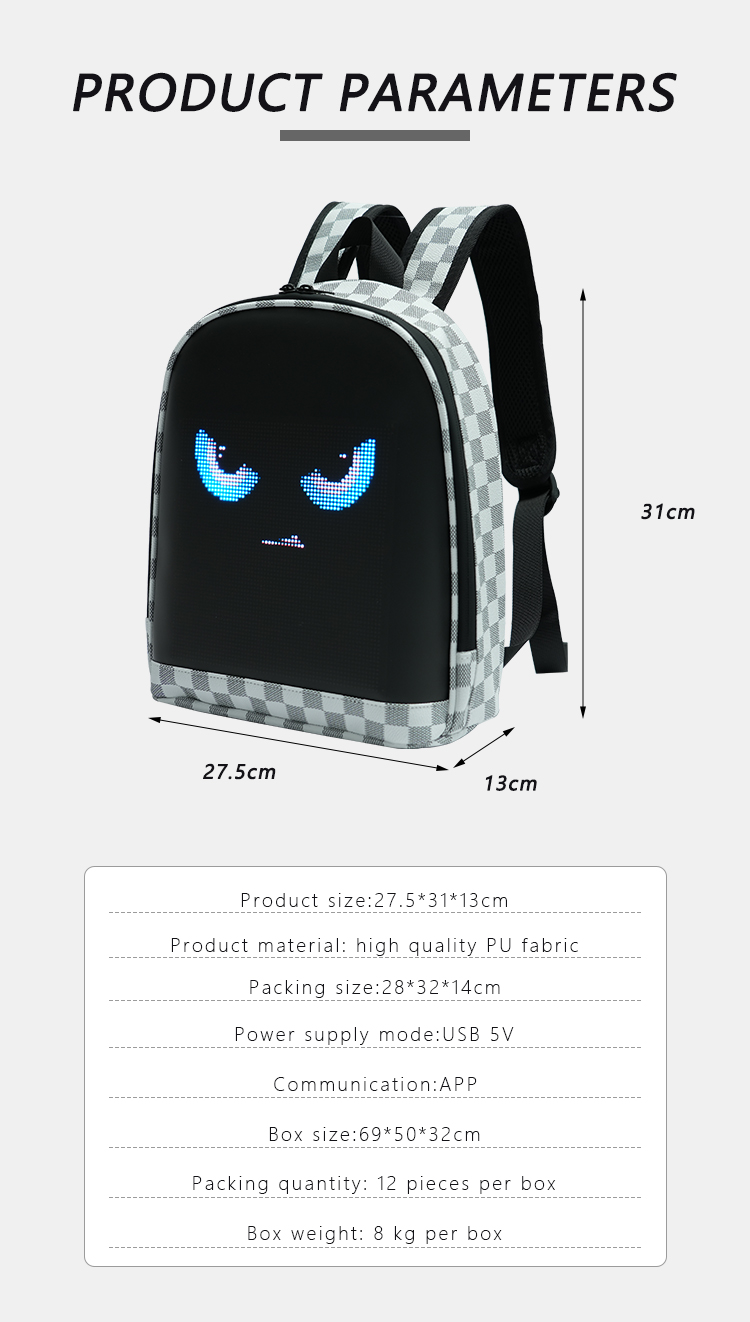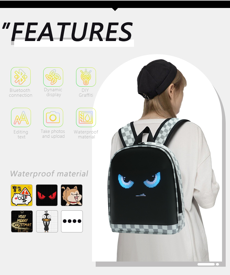 LED Display Waterproof Bag RGB Full Color LED Screen Backpack APP Control LED Bag Women Led Backpack Display
